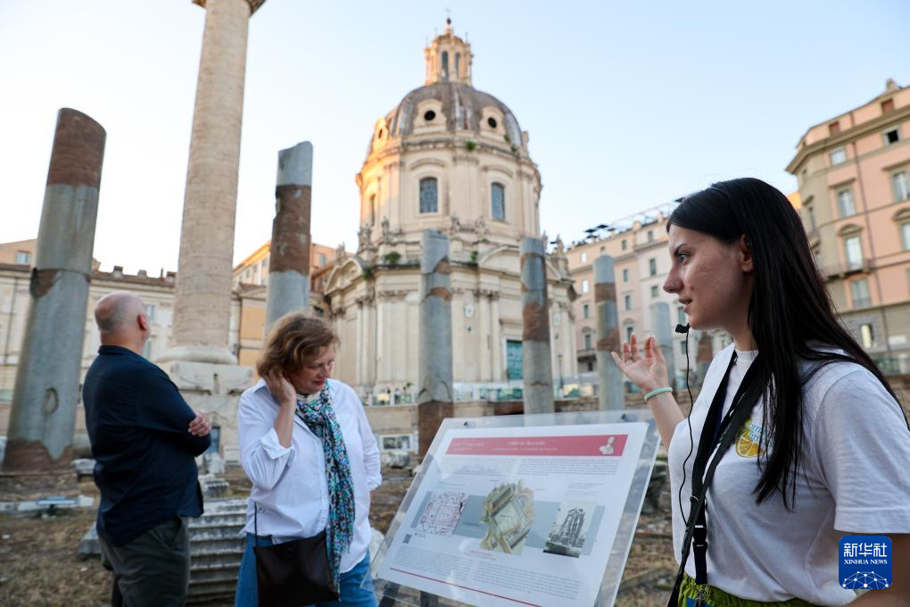 7月5日傍晚,在意大利羅馬,游客在古羅馬廣場參觀。