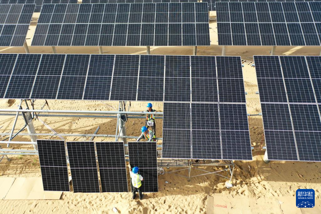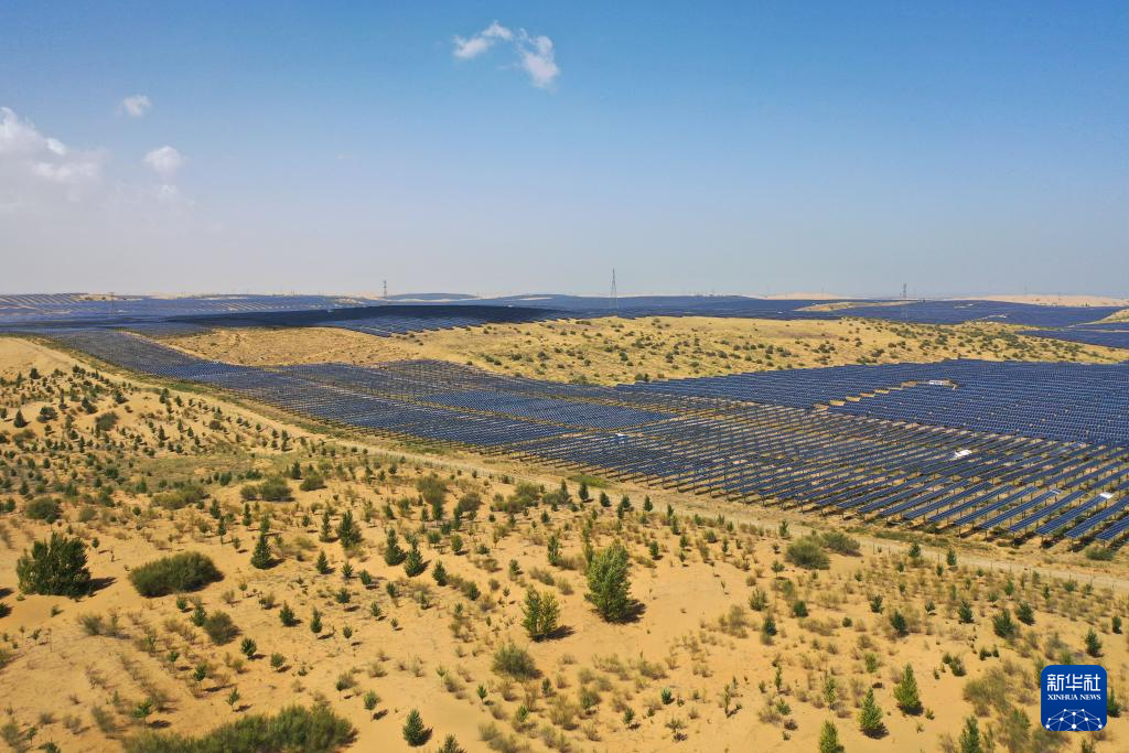 近年來,內(nèi)蒙古開展防沙治沙與風(fēng)電光伏一體化工程,推進(jìn)庫布其沙漠治理。目前,在鄂爾多斯市杭錦旗等庫布其沙漠北部地區(qū),一片片光伏基地在促進(jìn)新能源產(chǎn)業(yè)發(fā)展的同時(shí),成為當(dāng)?shù)厣鷳B(tài)治理、經(jīng)濟(jì)發(fā)展的堅(jiān)實(shí)屏障?!肮夥?生態(tài)治理”建設(shè)模式實(shí)現(xiàn)板上發(fā)電,板間、板下統(tǒng)籌兼顧特色生態(tài)修復(fù)、經(jīng)濟(jì)作物、造林綠化與技術(shù)創(chuàng)新,打造立體生態(tài)修復(fù)模式,讓沙海變成綠色電能涌動(dòng)的“藍(lán)海”,實(shí)現(xiàn)生態(tài)效益與經(jīng)濟(jì)效益共贏。