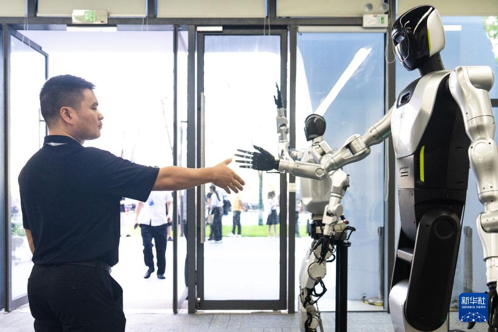 9月15日,在湖南湘江新區(qū)長沙智谷,兩臺(tái)人形機(jī)器人在進(jìn)行拳擊表演。