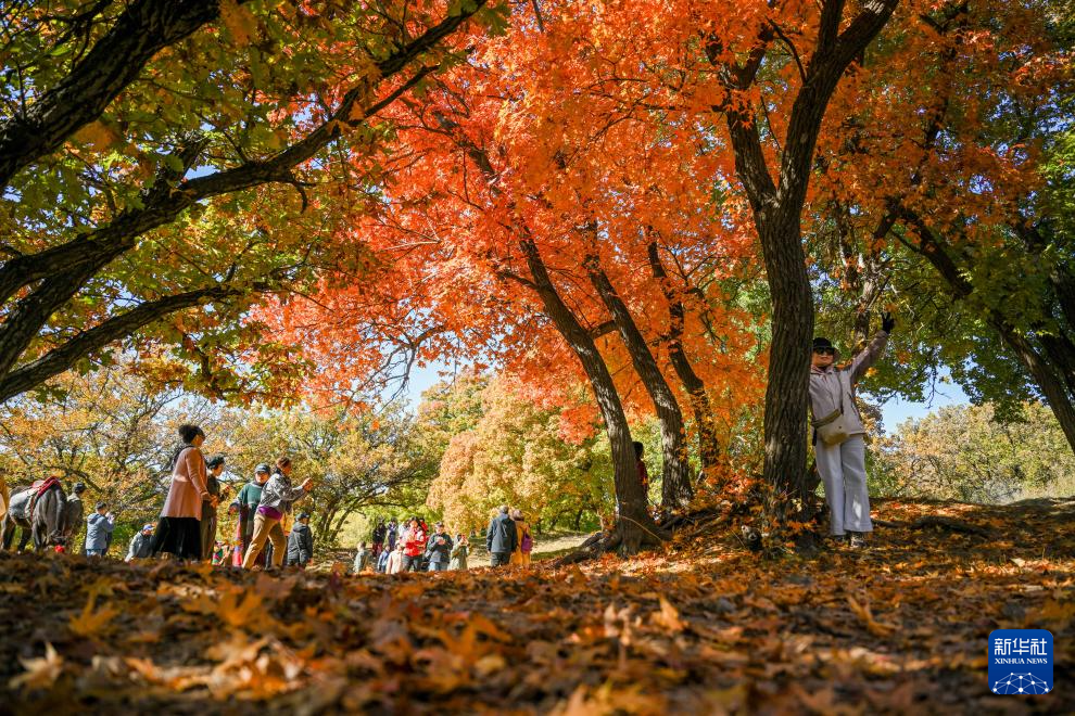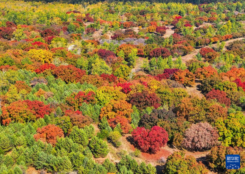 這是10月18日拍攝的烏旦塔拉五角楓森林公園美景(無人機(jī)照片)。