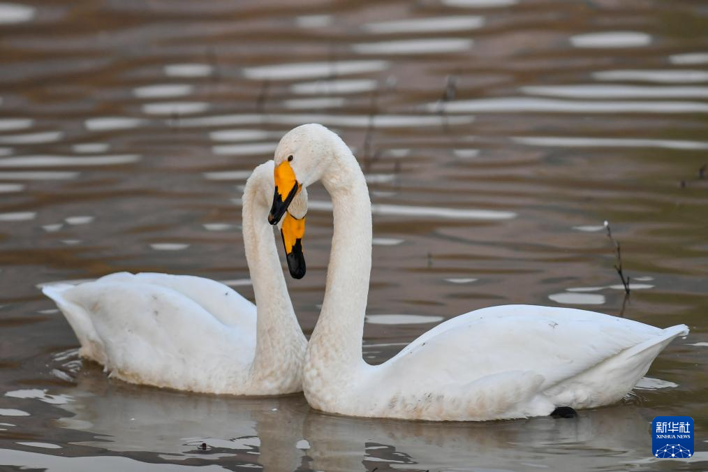 11月11日,白天鵝在山西平陸黃河濕地水面上游弋。