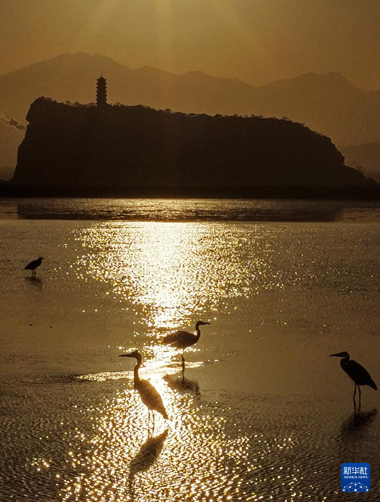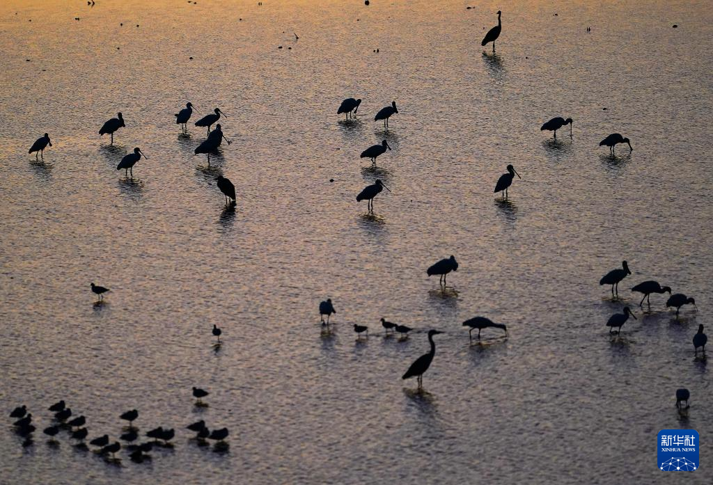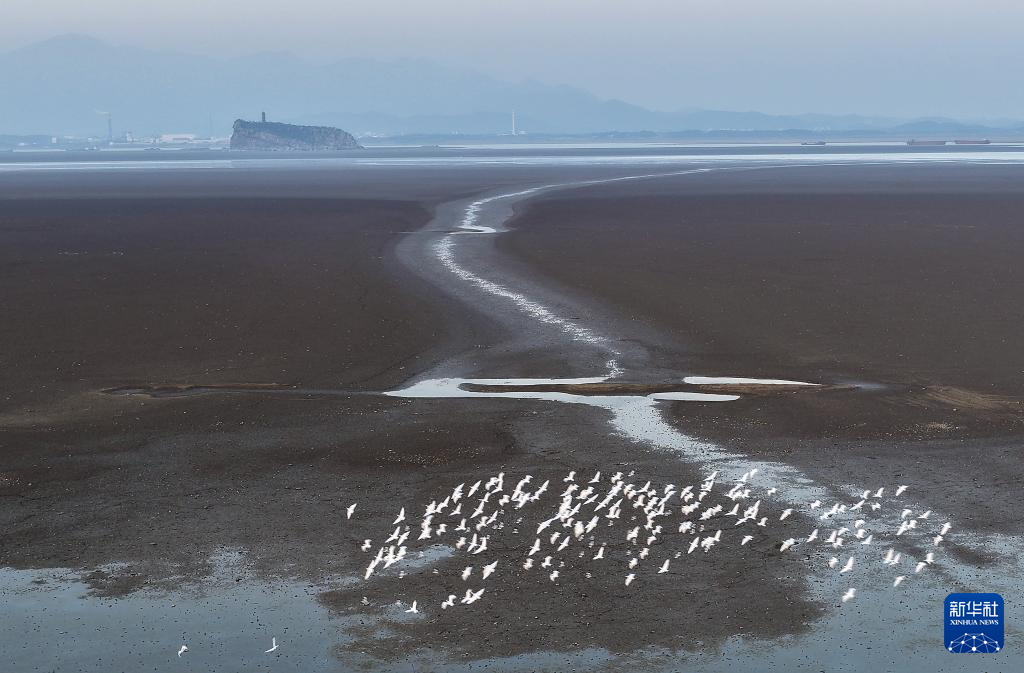 冬日暖陽灑滿鄱陽湖,江西省湖口縣鄱陽湖鞋山水域一派生機(jī)盎然。連日來,東方白鸛、白琵鷺等珍稀越冬候鳥,或翩躚棲息于灘涂,或低頭在淺水中覓食,繪就成一幅和諧共生的生態(tài)畫卷。