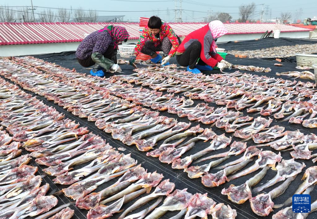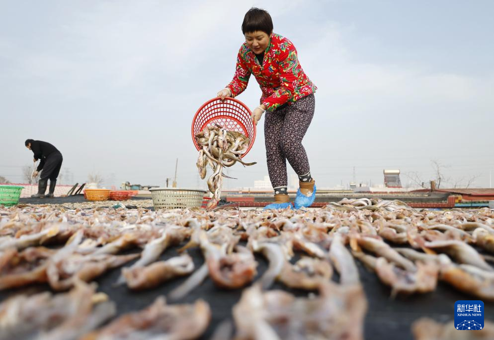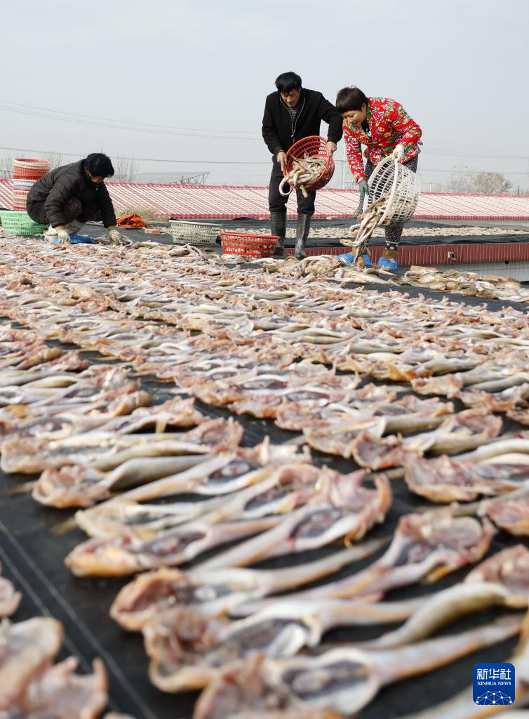 初冬時節(jié),河北省唐山市豐南區(qū)黑沿子鎮(zhèn)的漁民利用晴好天氣,將捕撈的魚蝦等海產(chǎn)品進行加工、晾曬,供應(yīng)市場。