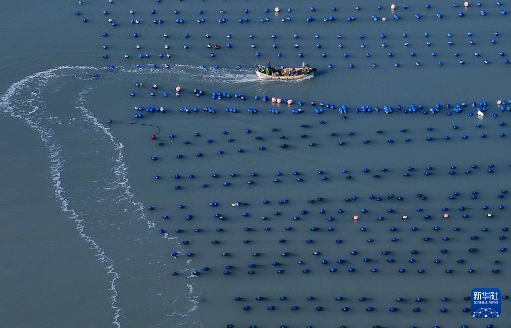 游客在位于福州市連江縣爐峰山上的觀景平臺(tái)觀賞山海風(fēng)景(12月6日攝,無人機(jī)照片)。