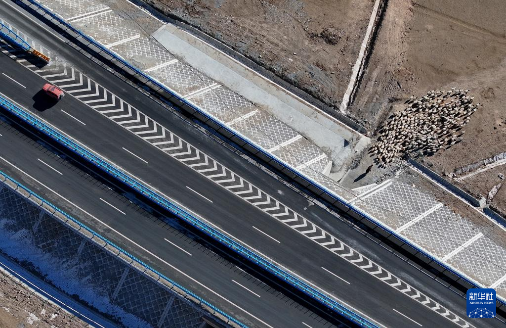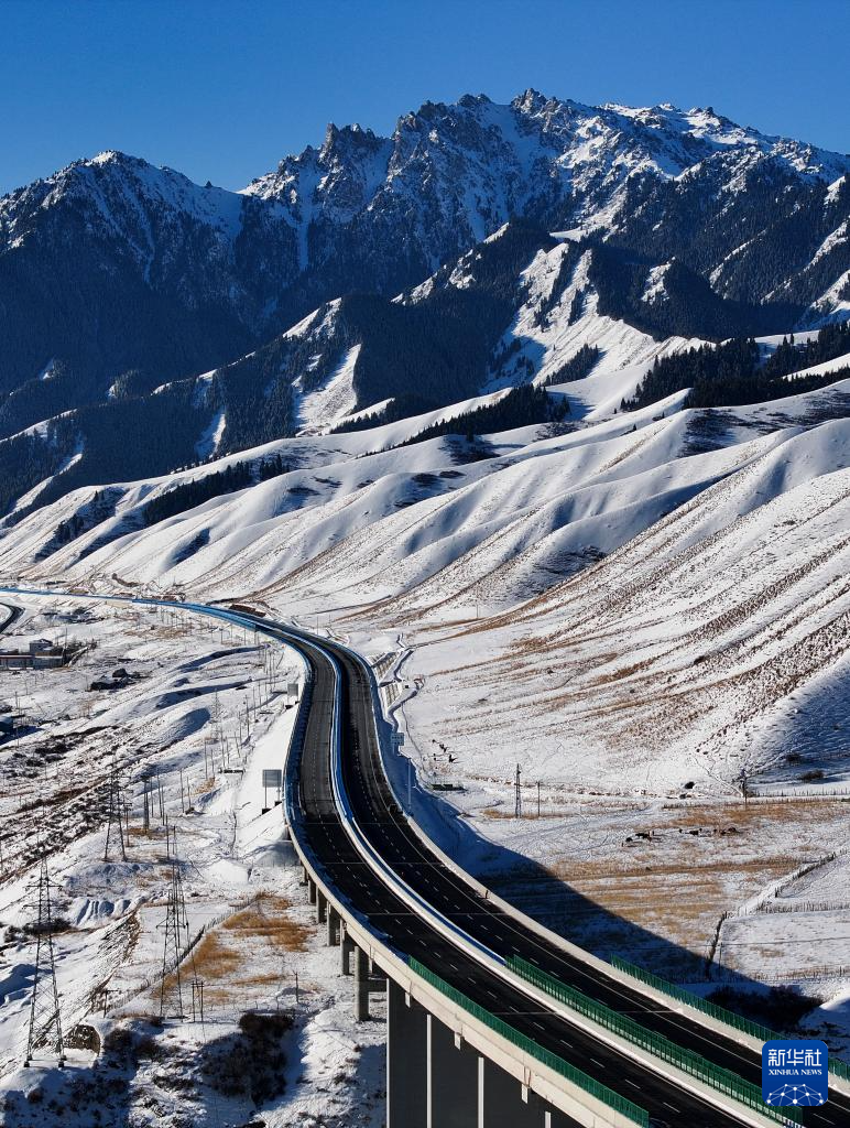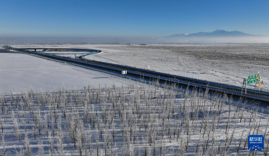 在新疆烏魯木齊縣拍攝的烏尉高速公路(12月23日攝,無(wú)人機(jī)照片)。