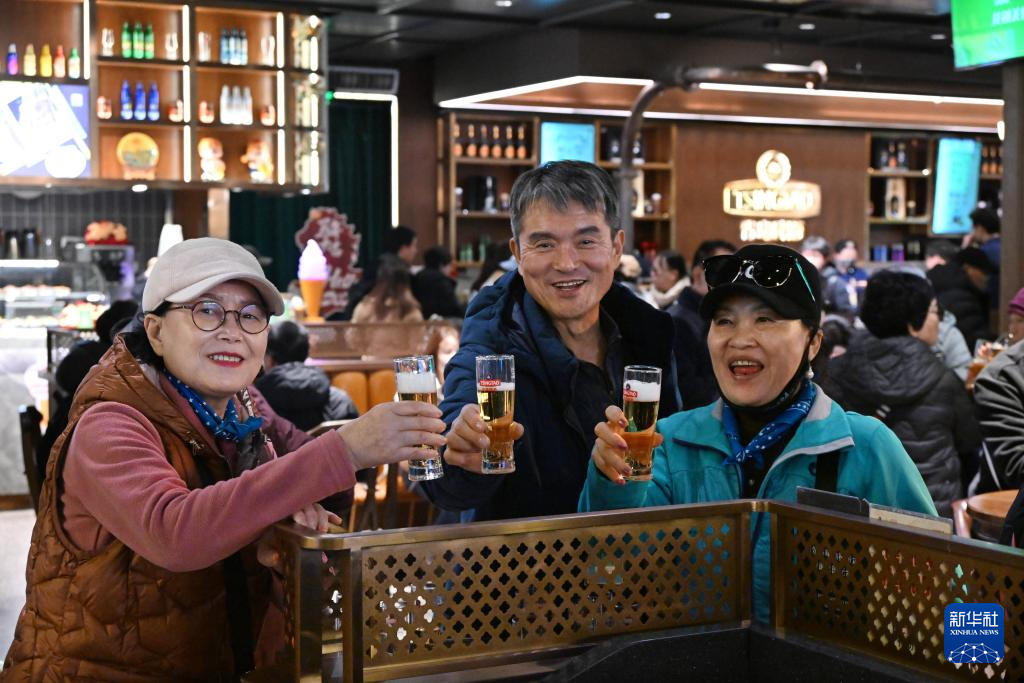 12月31日,韓國游客在青島啤酒博物館內(nèi)參觀游覽。