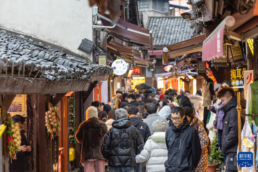 2026年1月1日,游客在重慶磁器口古鎮(zhèn)參觀游覽。