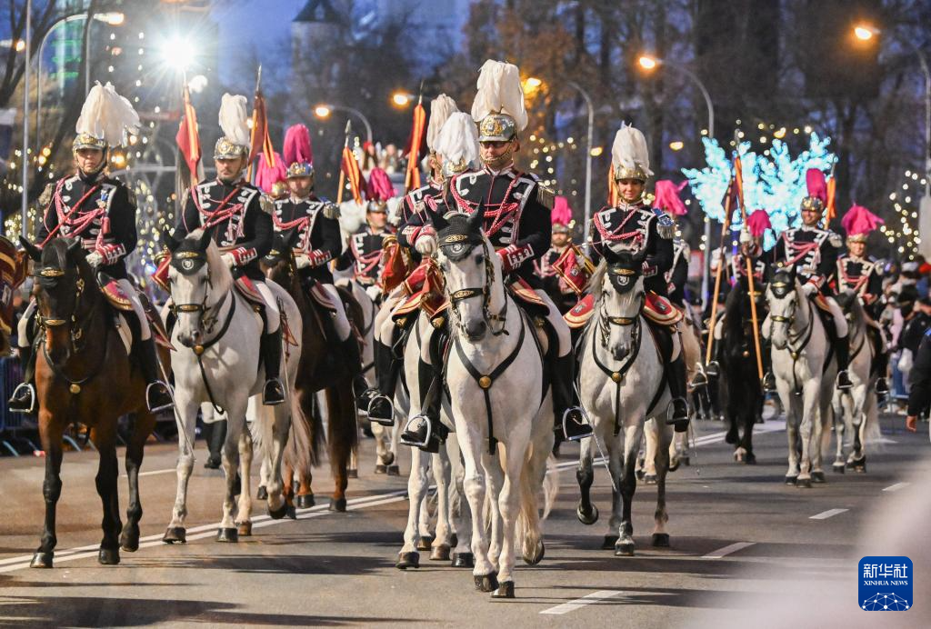 1月5日,表演隊(duì)伍在西班牙馬德里街頭巡游。