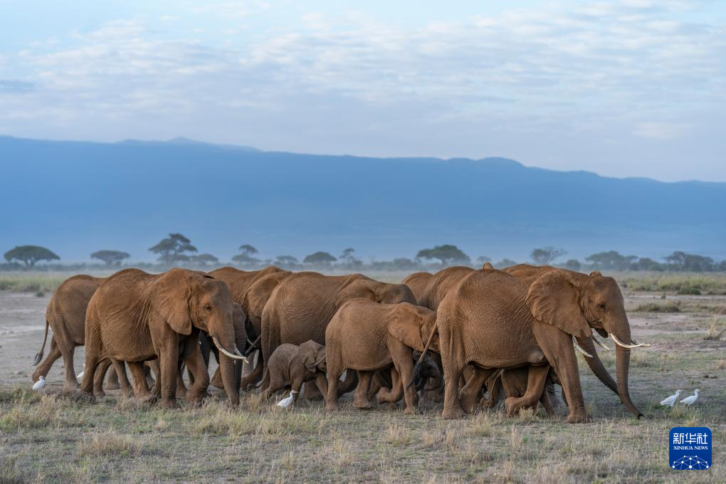 這是1月8日在肯尼亞安博塞利國家公園拍攝的象群。