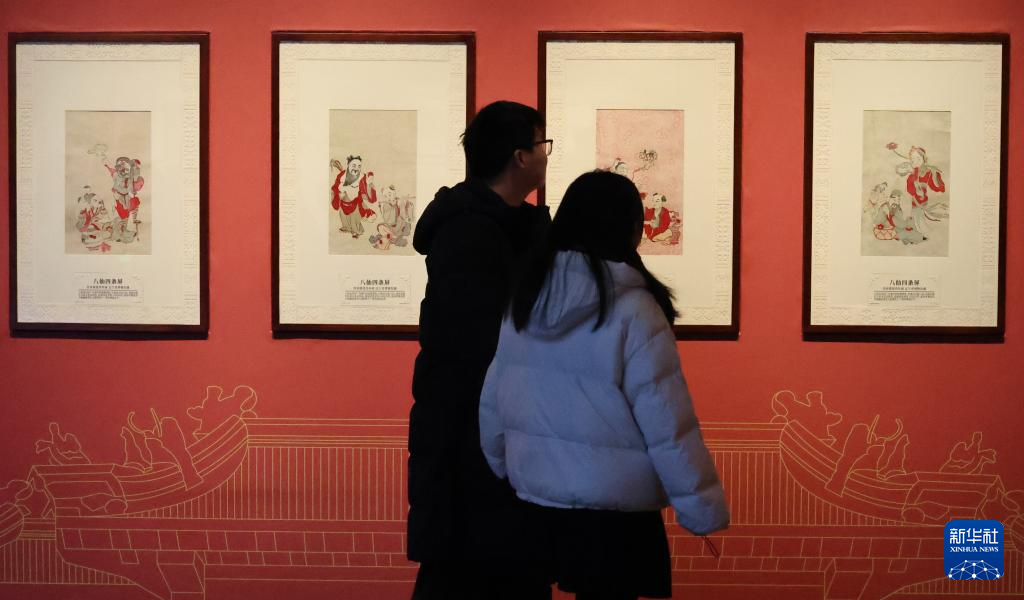 1月16日,觀眾在遼寧省博物館觀看展出的年畫作品。