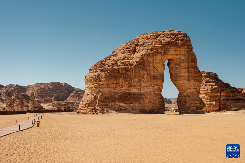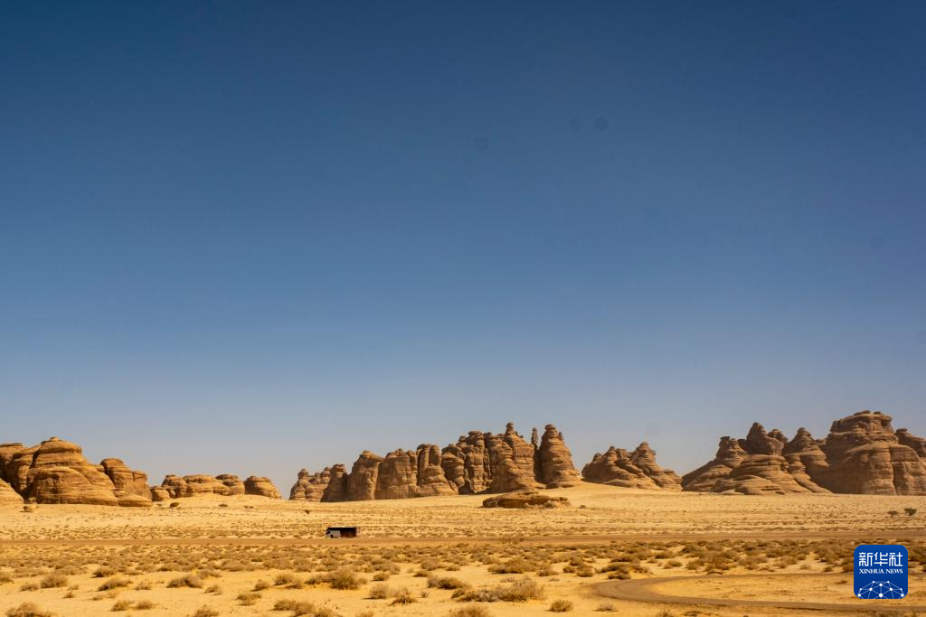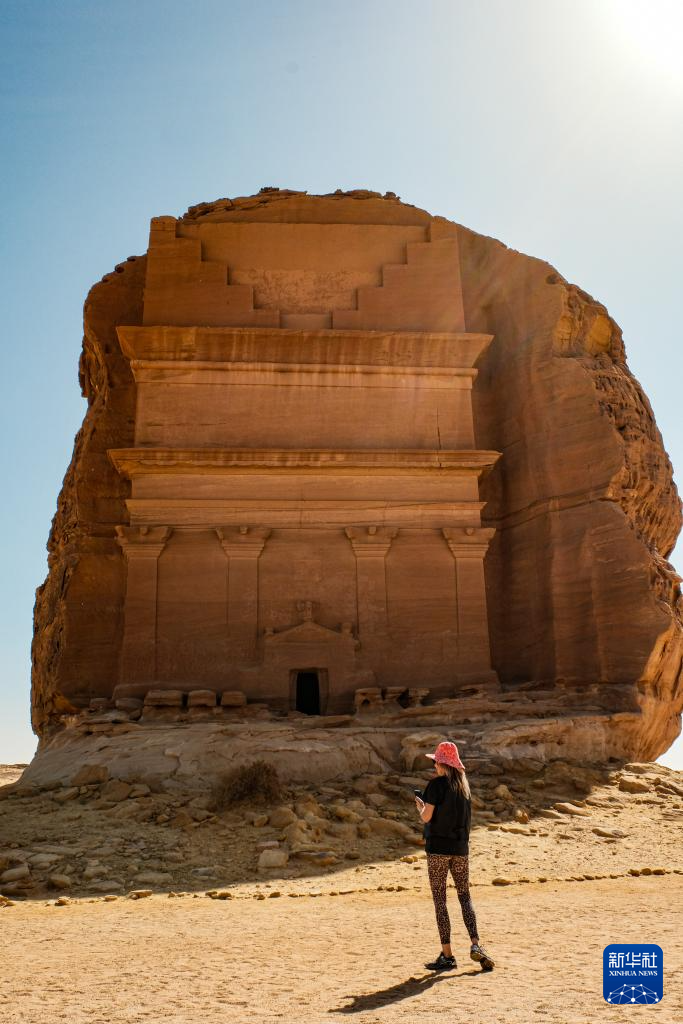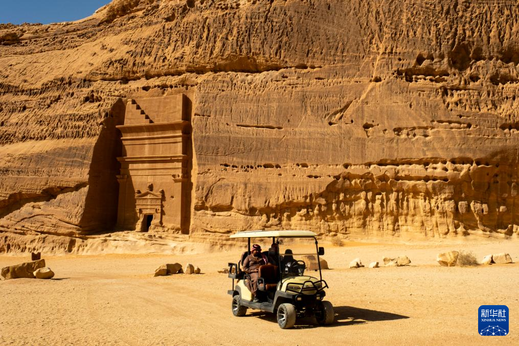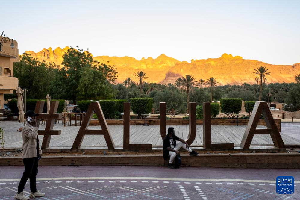1月17日,游客在沙特阿拉伯歐拉游覽石谷考古遺址。