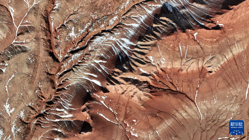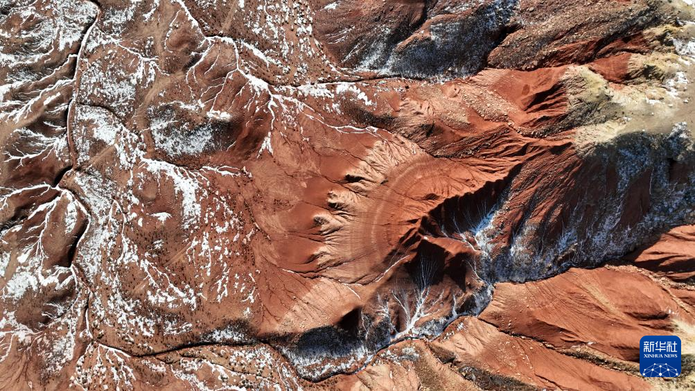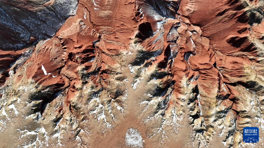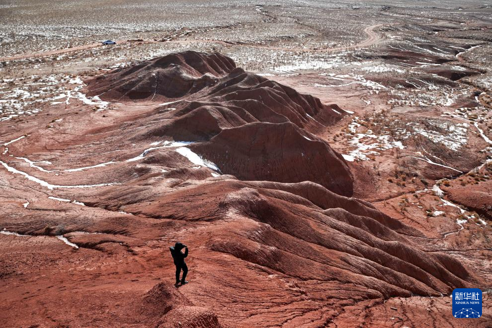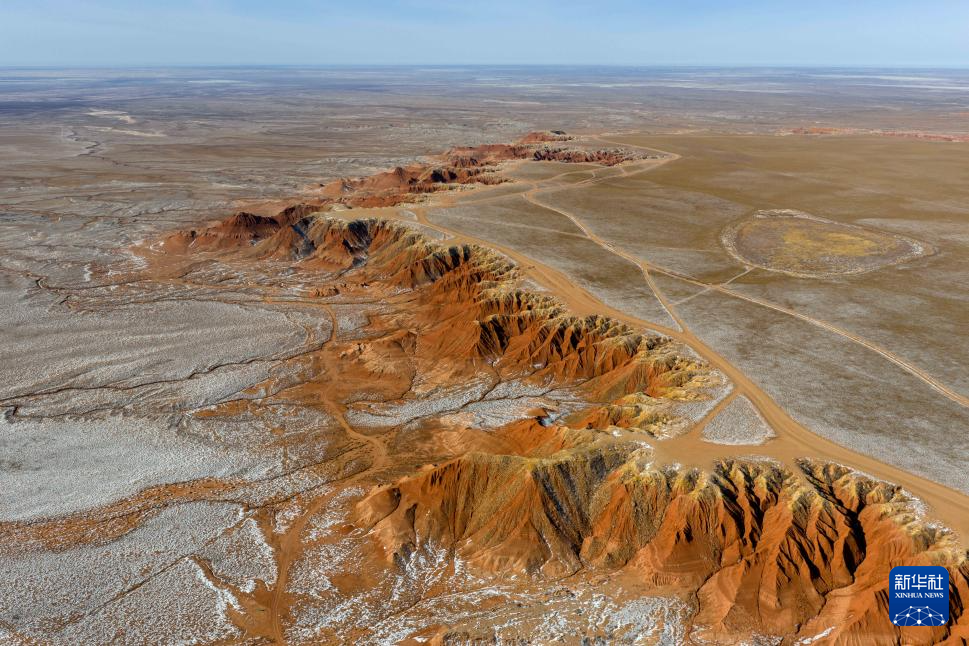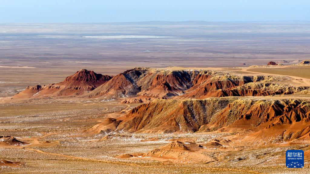 紅崖臺(tái)地位于內(nèi)蒙古烏蘭察布市四子王旗北部,是內(nèi)蒙古四子王國(guó)家地質(zhì)公園的重要組成部分。這里山丘聳立、溝壑縱橫,山體呈現(xiàn)赤紅色。隆冬時(shí)節(jié),稀薄殘雪點(diǎn)綴其間,在蒼茫天地中勾勒出一幅靜謐而壯麗的自然畫(huà)卷。