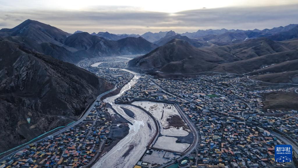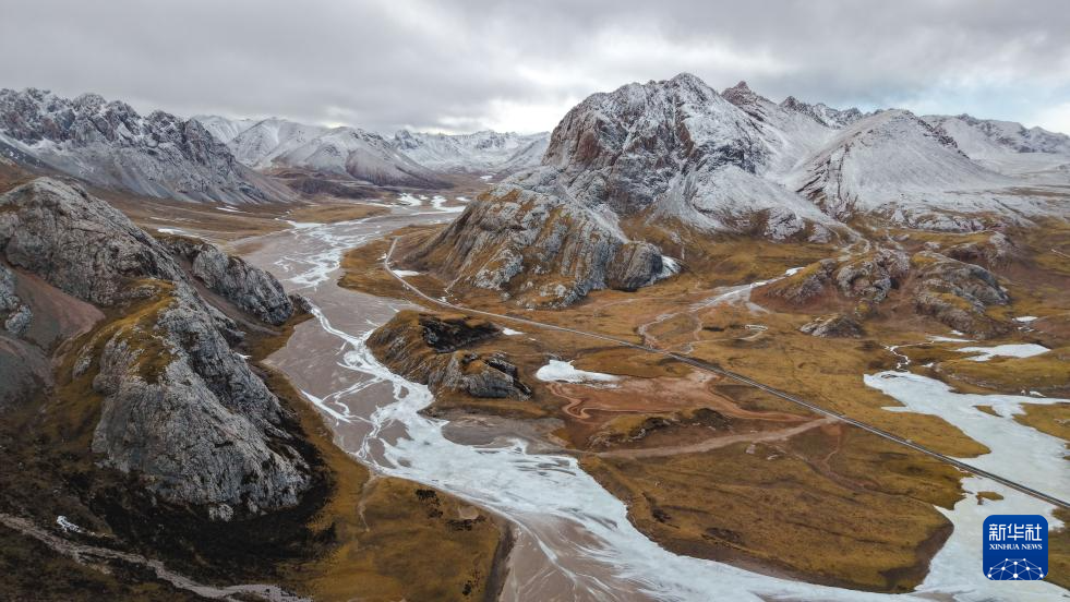 這是1月30日在青海省玉樹藏族自治州雜多縣境內(nèi)拍攝的冬景風光(無人機照片)。