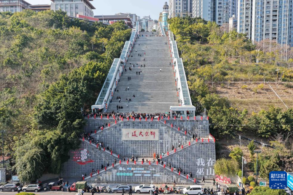 2月12日,重慶市巫山縣“神女大扶梯”開啟測試運行。扶梯串聯(lián)政府、醫(yī)院、學(xué)校、碼頭等城市功能節(jié)點,解決了沿線群眾長期繞行、爬坡的出行難題。據(jù)介紹,扶梯總長905米,提升高度242米,包括電扶梯21部、垂梯8部、自動人行道4部、人行天橋2座和跨線通道2座等。