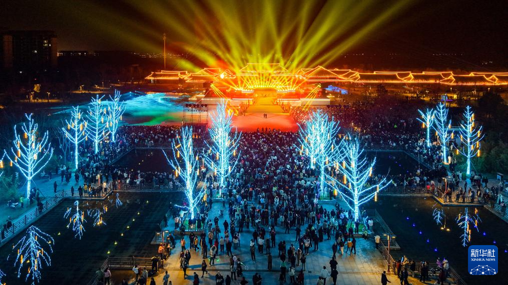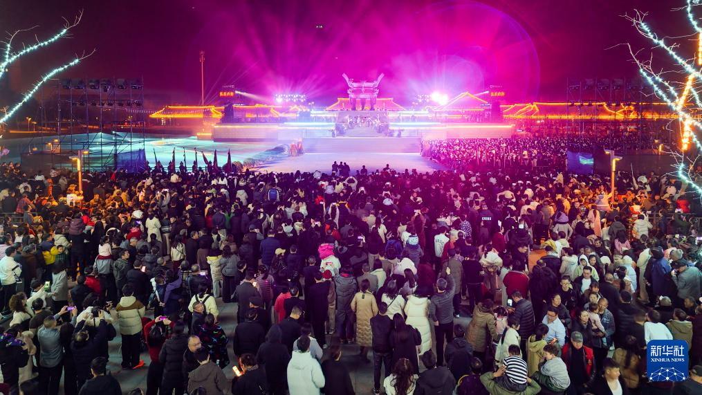 這是2月21日拍攝的“荊州十二時辰·楚樂八百年”演出現(xiàn)場(無人機(jī)照片)。