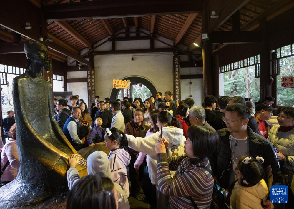 2月23日正月初七,丙午馬年“人日游草堂”祭拜詩(shī)圣儀式在成都杜甫草堂大雅堂前舉行,眾多學(xué)者、詩(shī)人和游客前來(lái)憑吊詩(shī)圣。1992年,成都杜甫草堂博物館首倡恢復(fù)了“人日游草堂”活動(dòng),這一文化活動(dòng)入選了四川省非物質(zhì)文化遺產(chǎn)目錄。