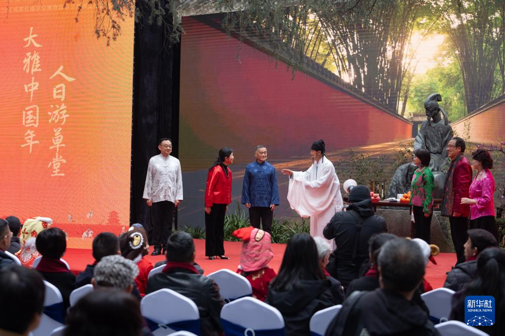 這是2月23日拍攝的丙午馬年“人日游草堂”祭拜詩(shī)圣儀式。